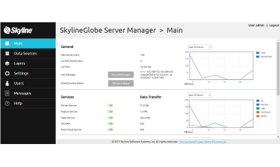 SkylineGlobe Server (SGS) is a private cloud solution that provides a comprehensive set of web services for publishing, storing, managing and streaming 3D spatial data. The server’s built-in complete user access control system allows easy management of users, groups, and administrative roles controlling the server-side storage and client-side read/write permissions.